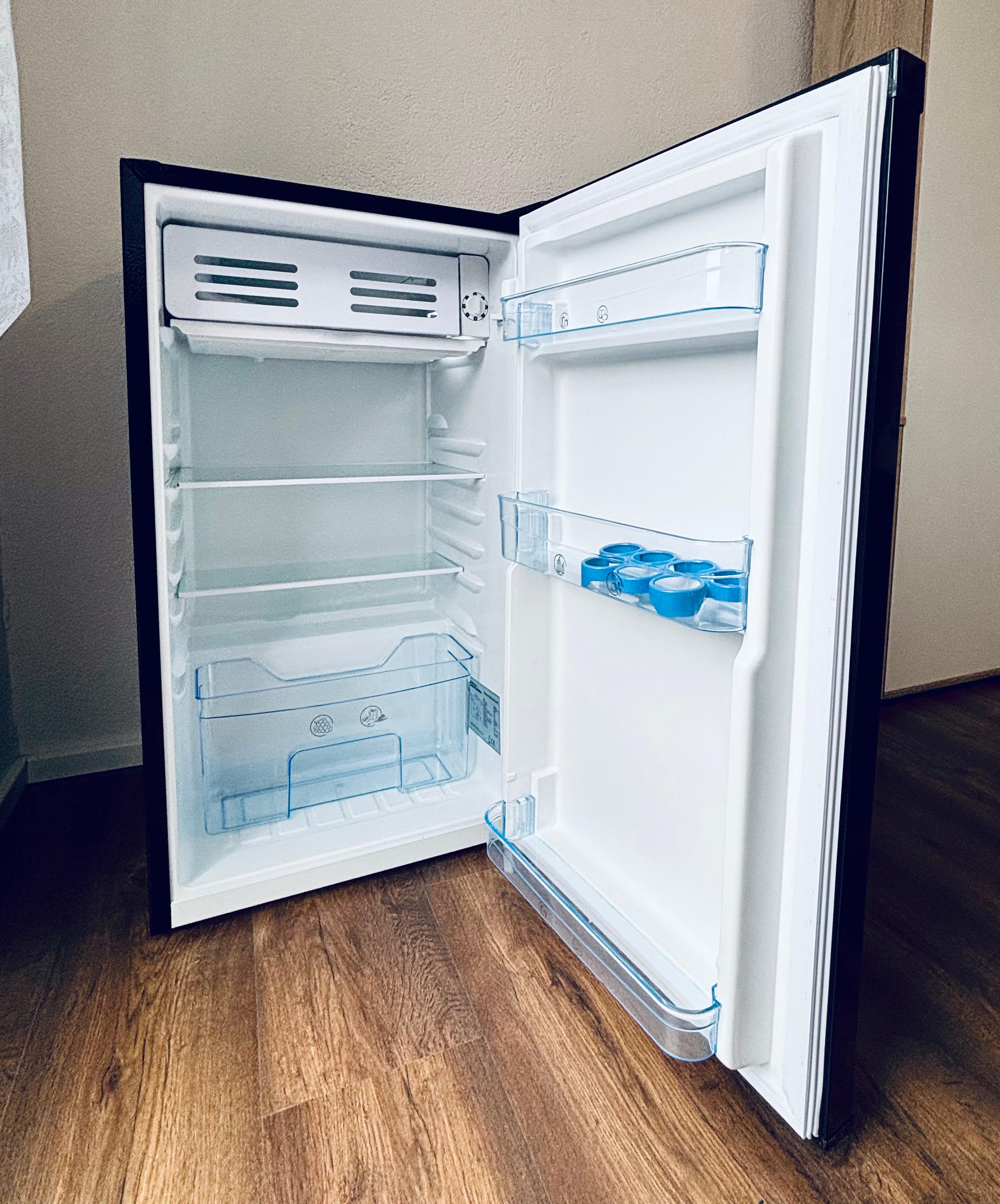 Das Zimmer „Balance“ bietet zwei Einzelbetten, einen eigenen Kühlschrank und Stauraum – ideal für Monteure, Geschäftsreisende oder Paare, die sauberen, funktionalen Komfort suchen.
