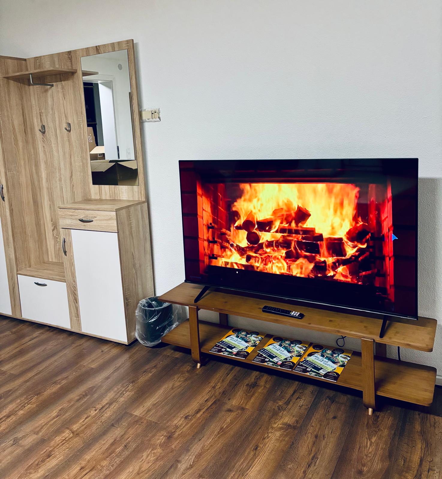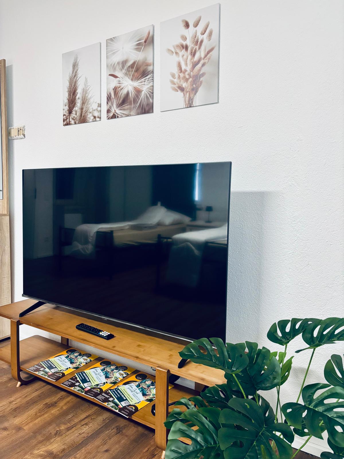 Das Zimmer „Balance“ bietet drei Einzelbetten, 55" Fernseher, einen eigenen Kühlschrank und Stauraum – ideal für Monteure, Geschäftsreisende oder Paare, die sauberen, funktionalen Komfort suchen.