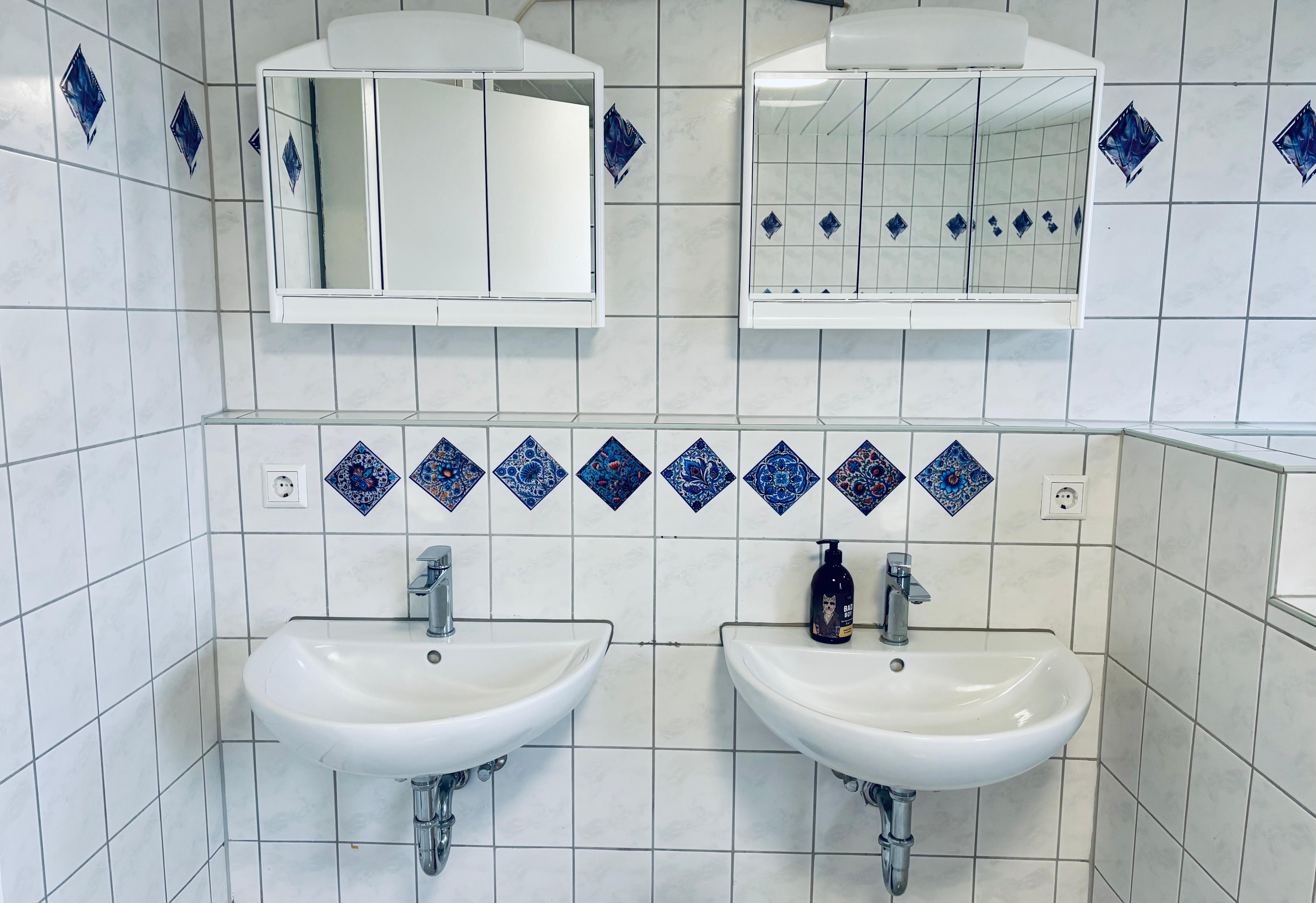 Die vier Zimmer nutzen gemeinsam ein großes Gemeinschaftsbad (Badewanne, Dusche, WC), ein zusätzliches WC im Erdgeschoss sowie eine voll ausgestattete Gemeinschaftsküche, die zur gemeinschaftlicher Nutzung bereit steht.